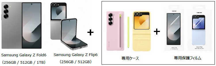 ・「Samsung Galaxy Z Fold6」、「Samsung Galaxy Z Flip6」をご購入いただくと、お好きな専用ケース※、保護フィルムのセットをプレゼント。