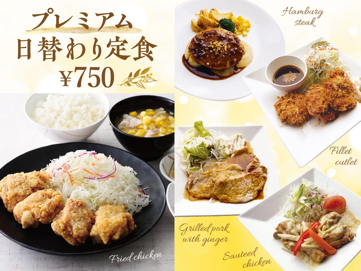 ◇少しリッチな日替わり『プレミアム定食』税込750円。