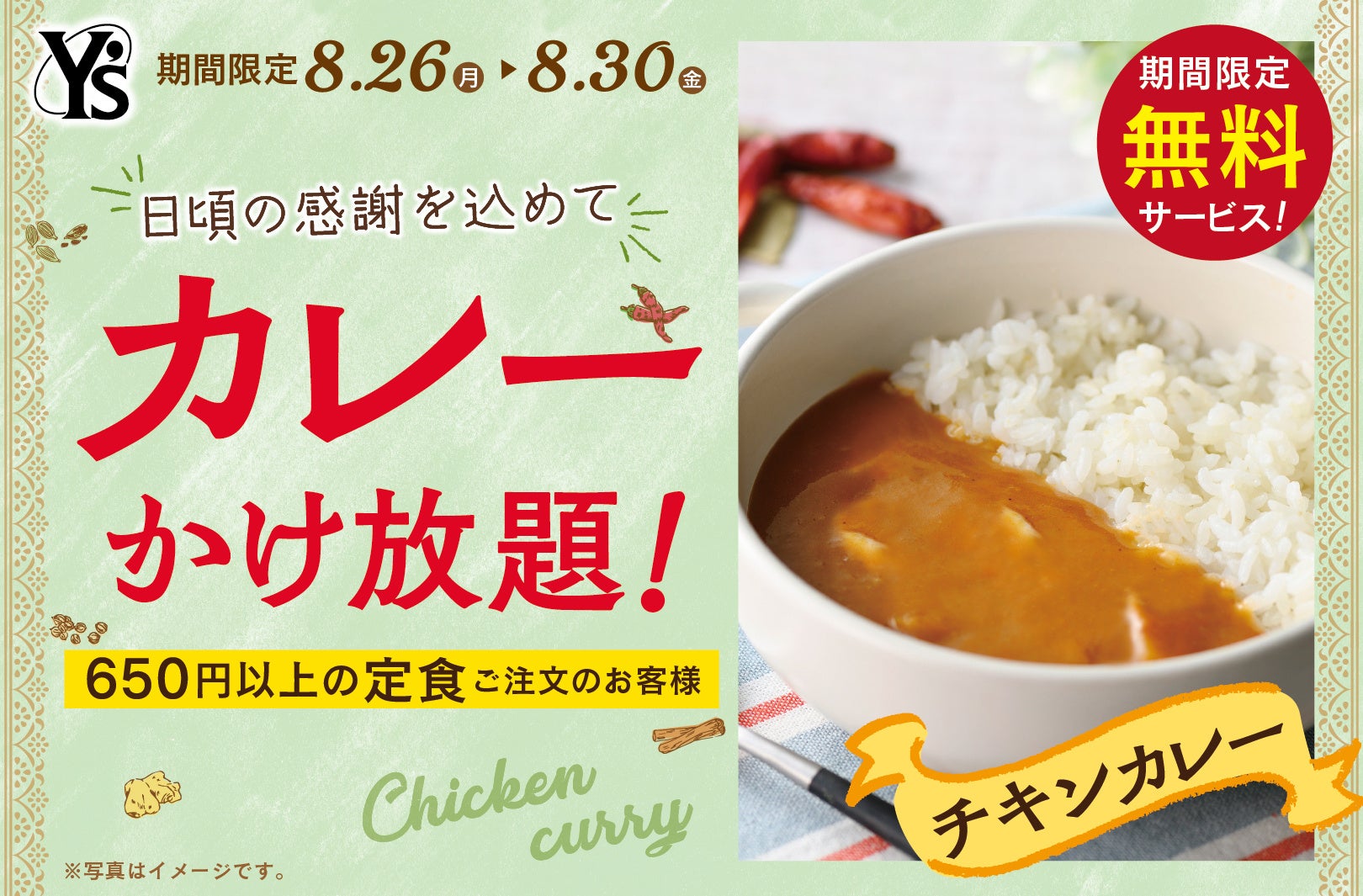 日頃の感謝を込めて、『チキンカレーかけ放題』!