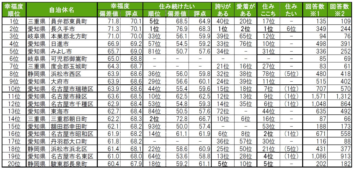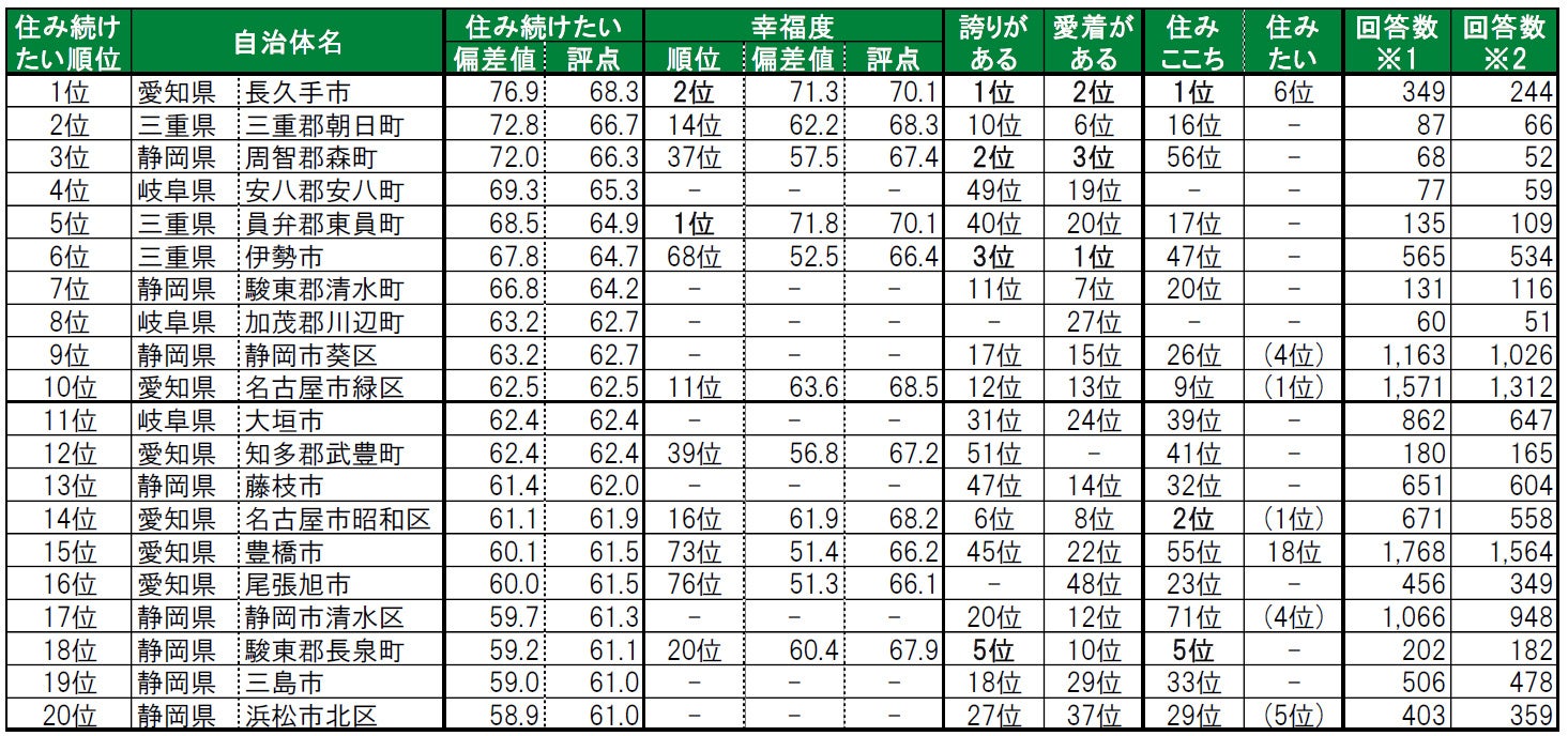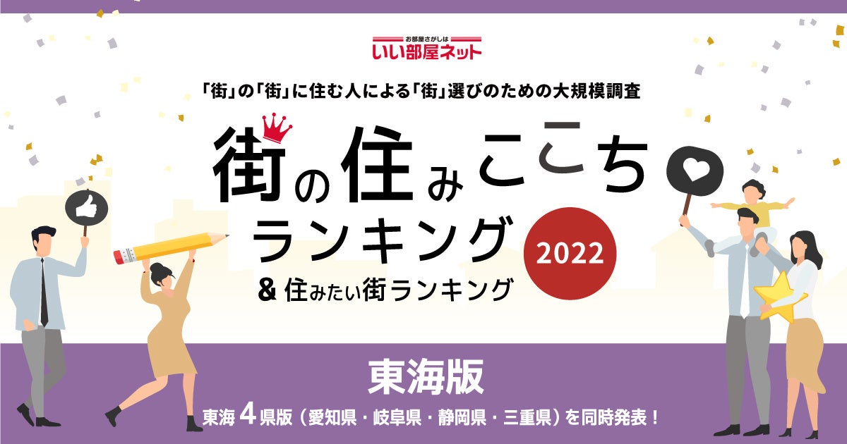 いい部屋ネット「街の幸福度 & 住み続けたい街ランキング2022<東海版>」(街の住みここちランキング特別集計)発表