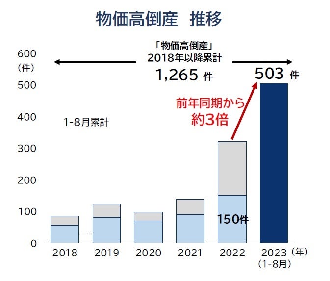 株式会社帝国データバンクは、2023年8月31日までに発生した「物価高倒産」の発生状況について調査・分析を行った。