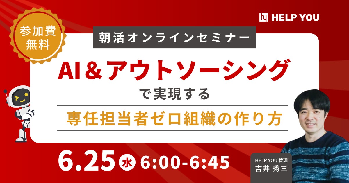 このたび、令和7年6月25日(水)6:00より、朝活セミナー『AI&アウトソーシングで実現する専任担当者ゼロ組織の作り方』を開催いたします。