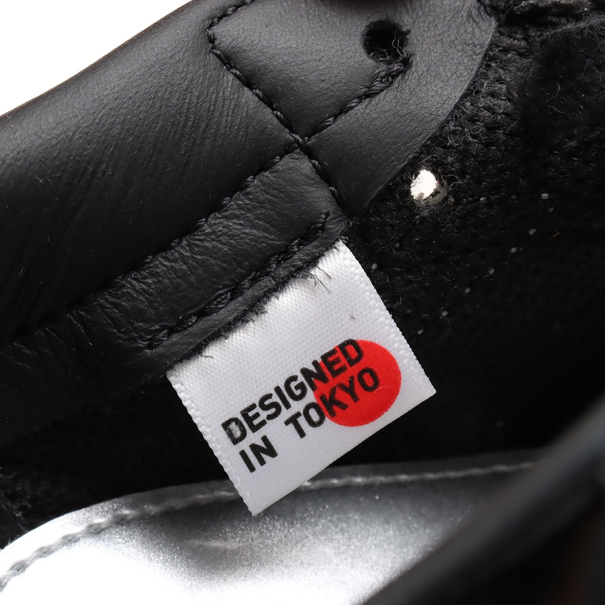 アッパーのシルバー部分はイタリア製のレザー「ペリグリーノ」を採用、ブラック部分はパテントレザー、インソールにはレザーシートの上からエンボスで銀箔を塗布したロックアップロゴを施し、シューレースチップにシルバーなど、細かいディテールにも拘りを感じられる仕上がり。インナーには“DESIGNED BY TOKYO”のピスタグも設置。