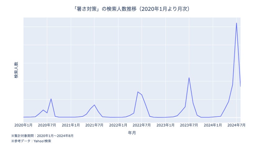 2024年6月から8月の「暑さ対策」の検索人数は2020年同時期の5.1倍に