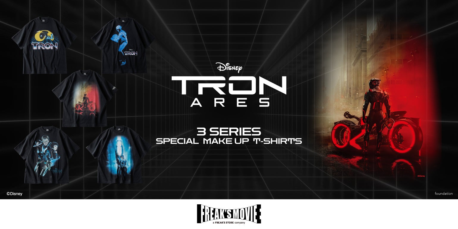 映画『トロン』シリーズ最新作『トロン:アレス」の日米同時公開を記念し、FREAK'S STORE(FREAK’S MOVIE)がスペシャルデザインTシャツを販売。映画公開同日の10/10(金)より、FREAK'S STORE渋谷併設ギャラリー「OPEN STUDIO」にて期間限定ポップアップストアを開催するほか、FREAK'S STORE一部店舗、公式オンラインストア「Daytona Park」での販売をスタートいたします。