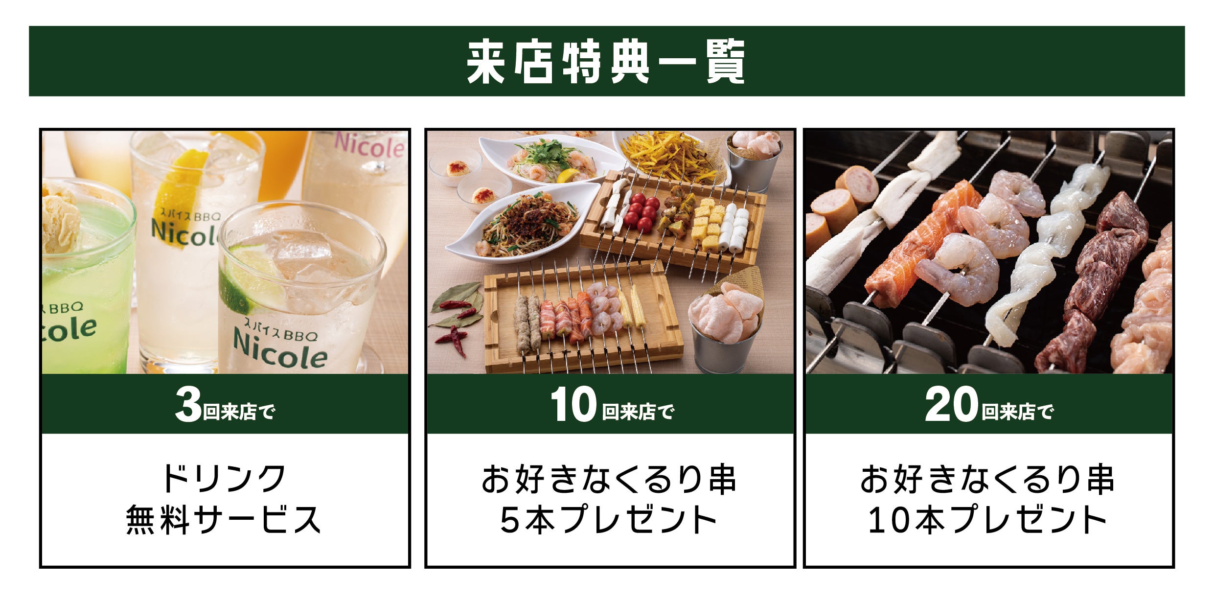 ・20回来店…お好きなくるり串10本プレゼント