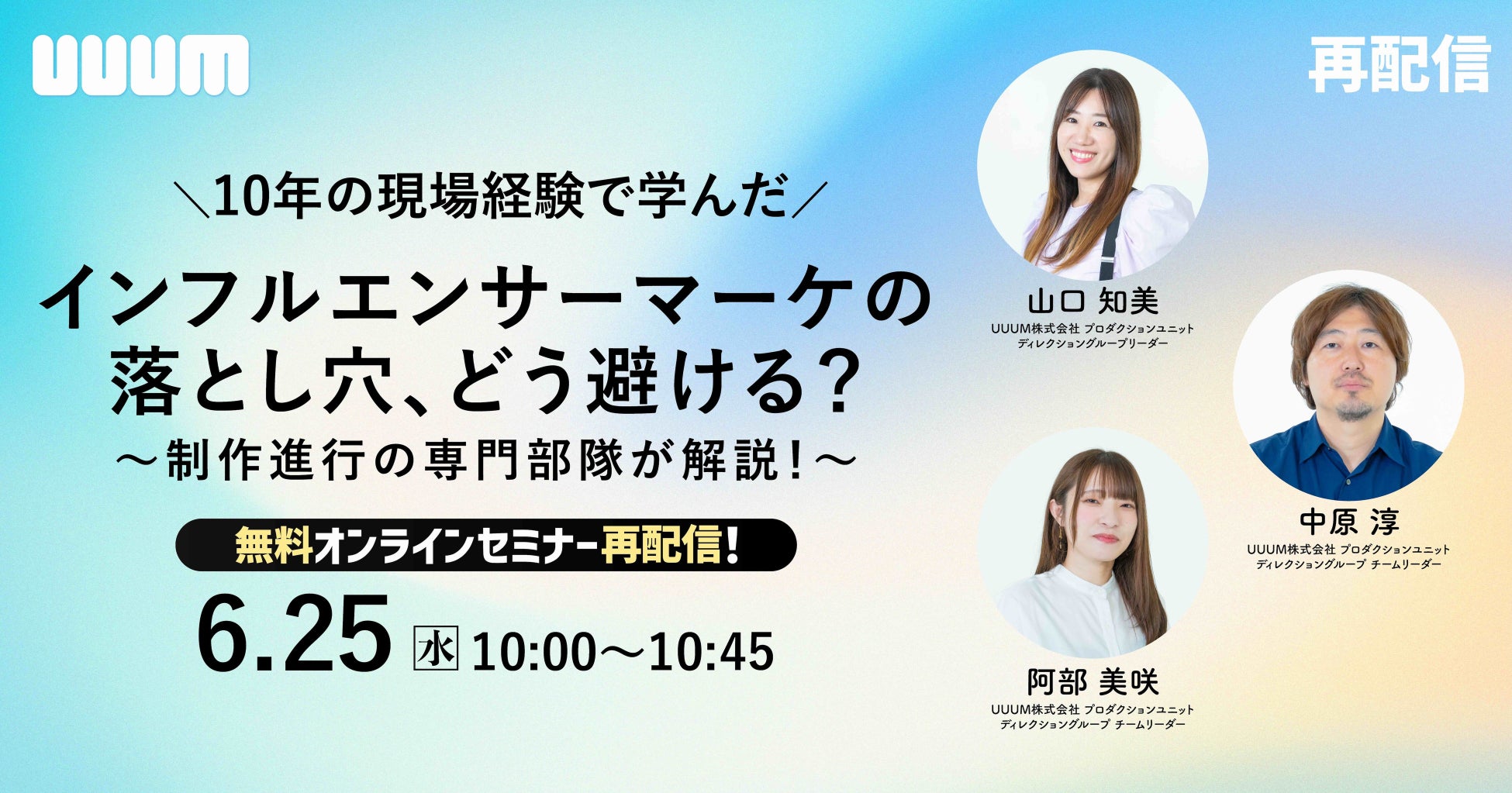 「10年の現場経験で学んだ インフルエンサーマーケの落とし穴、どう避ける?〜制作進行の専門部隊が解説!〜」と題したオンラインセミナーを、2025年6月25日(水)10:00〜10:45 にて再配信いたします。