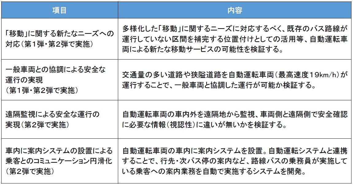 本実験の第1弾は、技術実証を目的として2022年9月13日(火)~15日(木)の期間、横浜市青葉区にて検証を行います。その後、技術検証の結果を踏まえ、第2弾では、遠隔監視設備を設置し、一般の方への試乗会を2022年度内に実施する予定です。