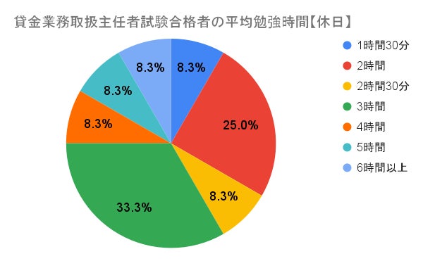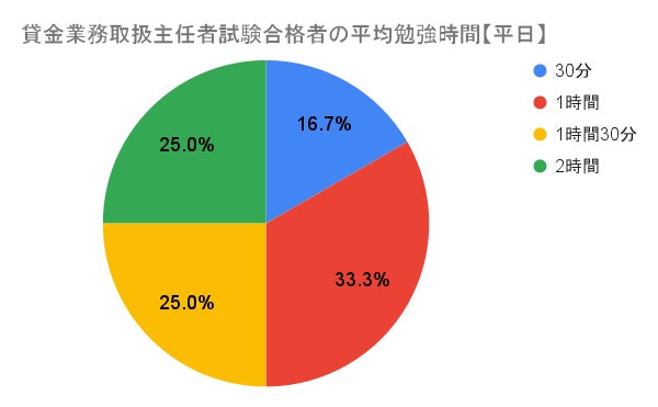 貸金業務取扱主任者試験の勉強時間に関するアンケート結果「合格者の勉強時間は平日1時間以上が83.3%、休日3時間以上が58.2%」