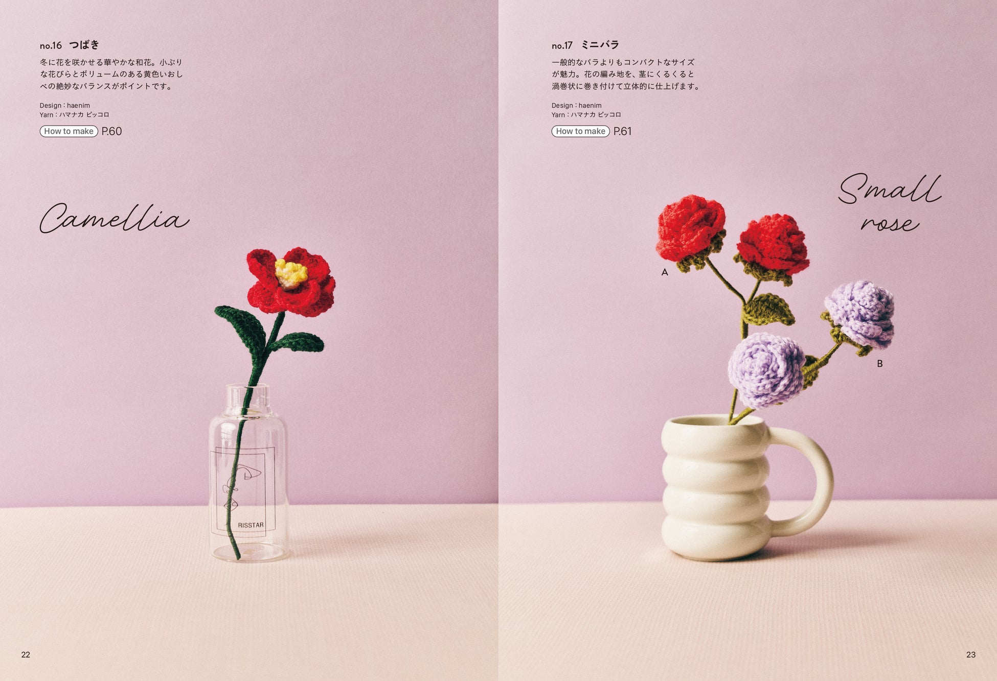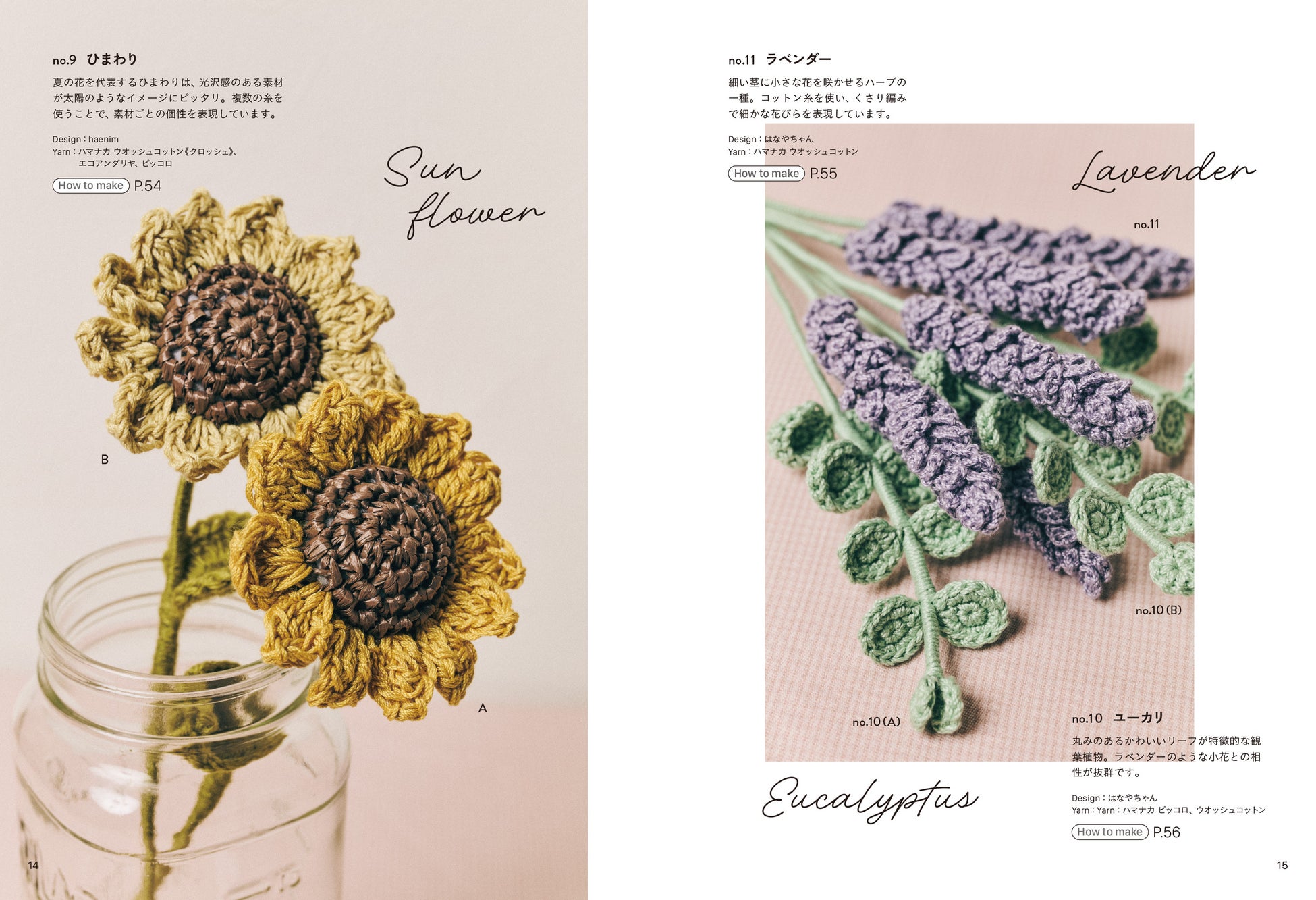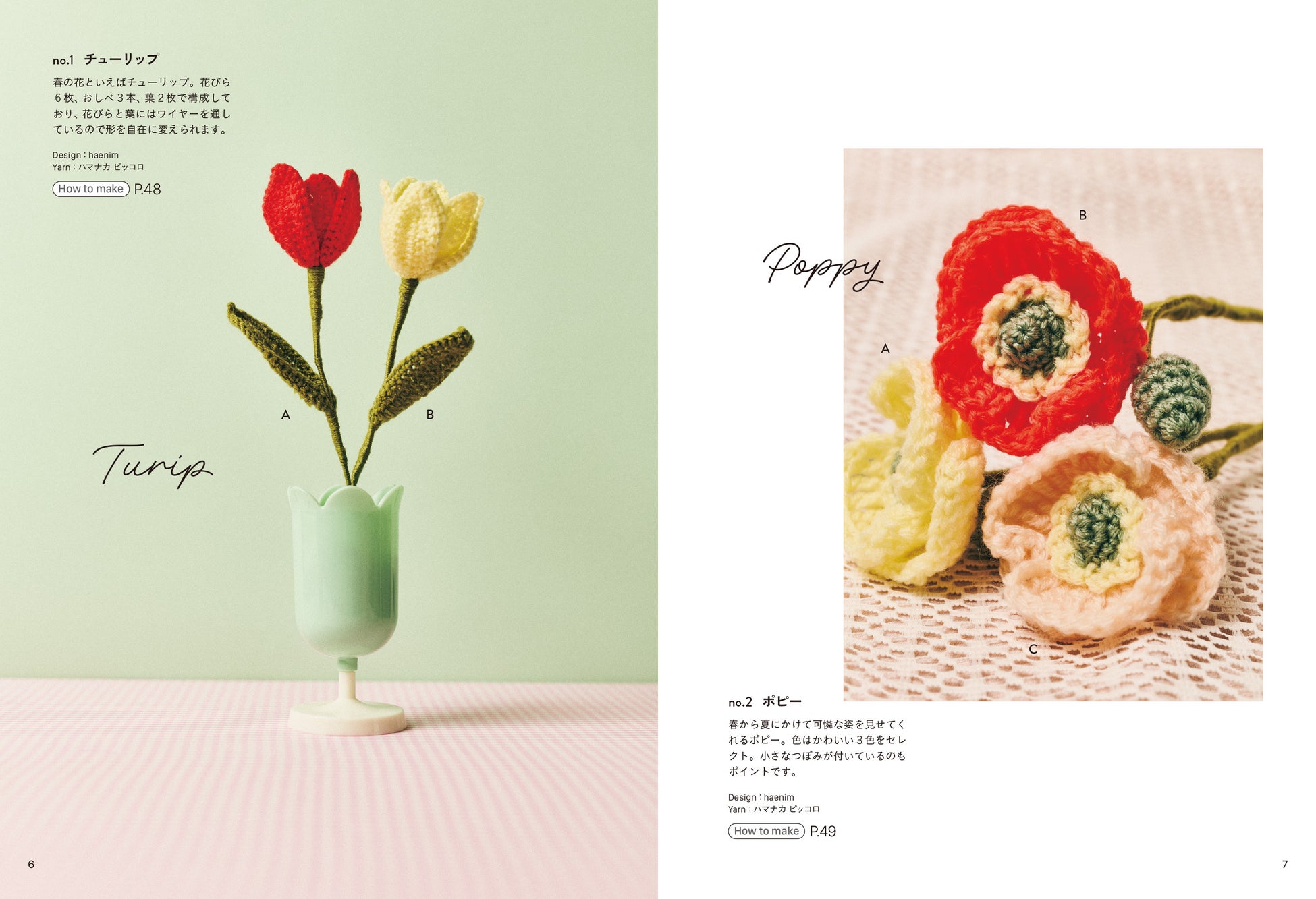 毛糸やコットン糸で作る、かわいくて作りやすいお花をモチーフにした編み物の本です。