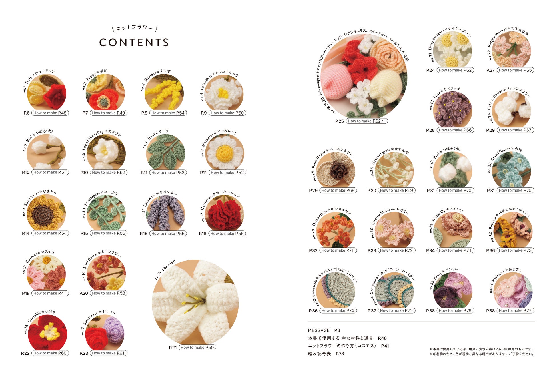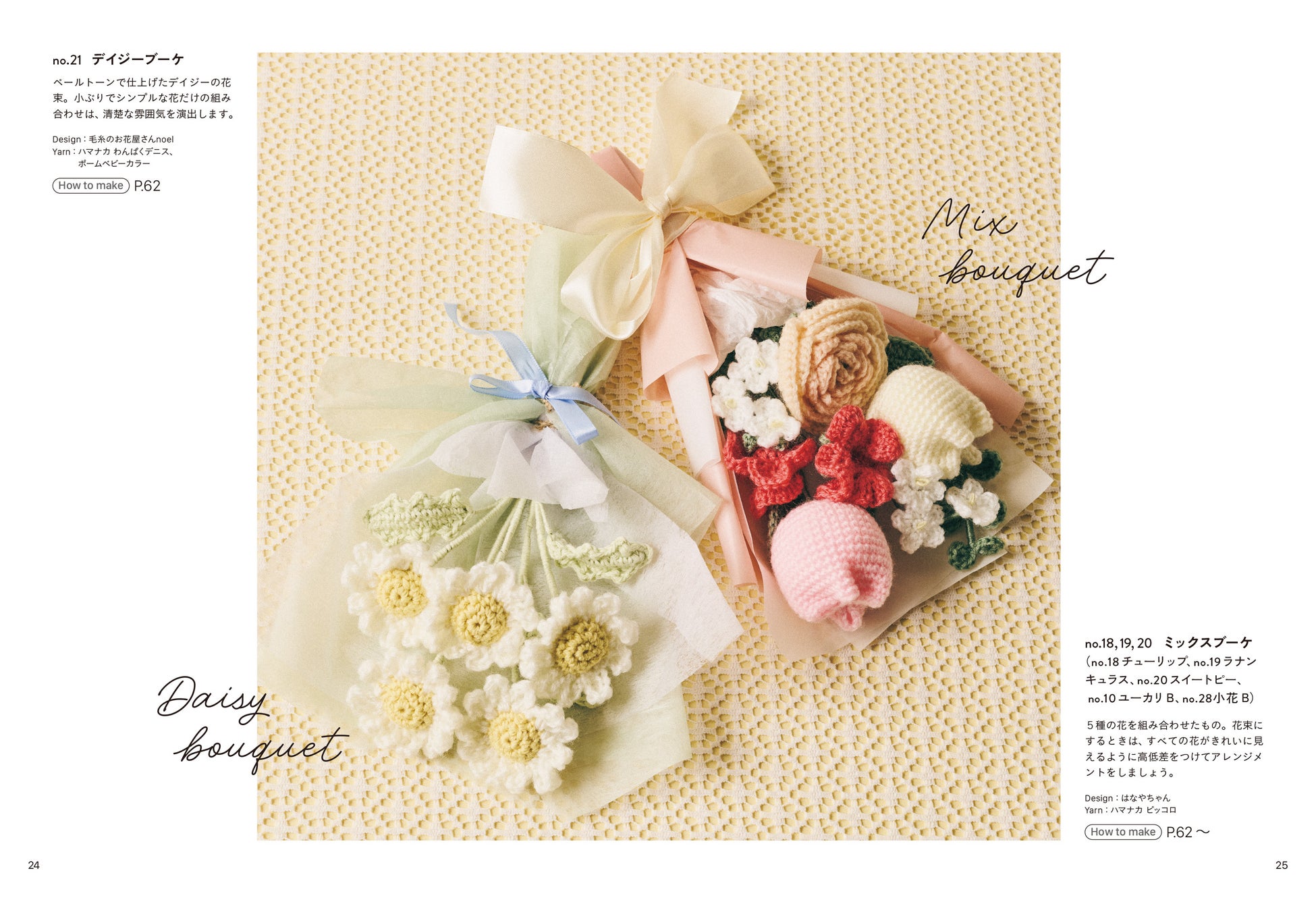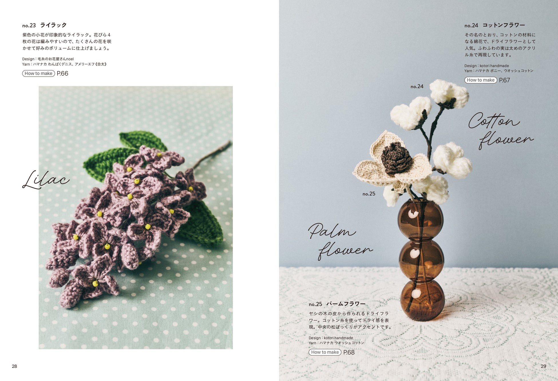 毛糸やコットン糸で作る、かわいくて作りやすいお花をモチーフにした編み物の本です。