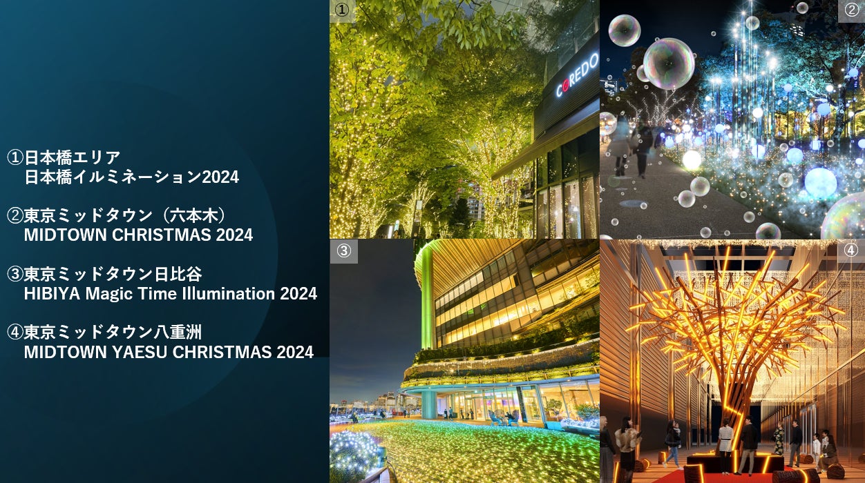 三井不動産株式会社(本社:東京都中央区 代表取締役社長:植田俊、以下「三井不動産」)は、地域と連携してエリアマネジメントを推進する都内の4つのエリア(日本橋エリア、東京ミッドタウン(六本木)、東京ミッドタウン日比谷、東京ミッドタウン八重洲)にて、クリスマスのイベントを開催します。