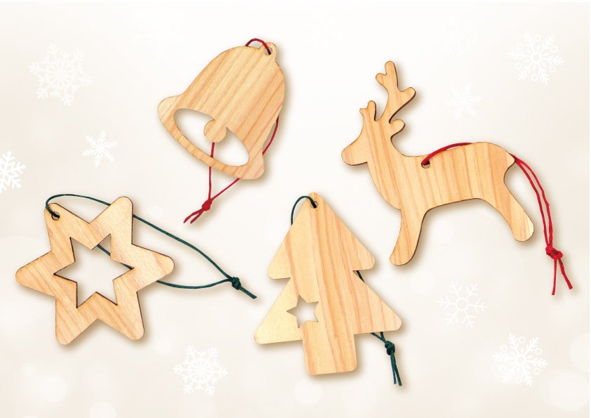 スタンプ2つで国産杉の間伐材を使ったクリスマスオーナメントをプレゼント(各施設先着250名、合計1,000名)