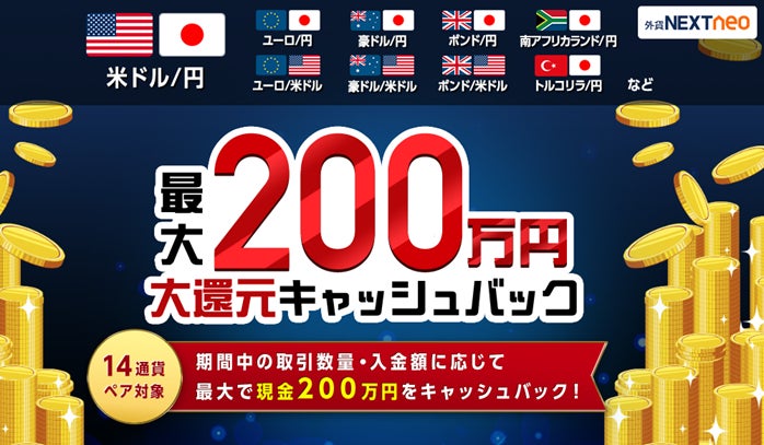 『外貨ネクストネオ』でのお取引で最大200万円をキャッシュバック!