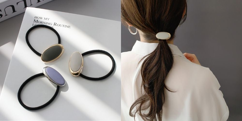 ローポニーやお団子ヘアには、ヘアゴムがおすすめです。
