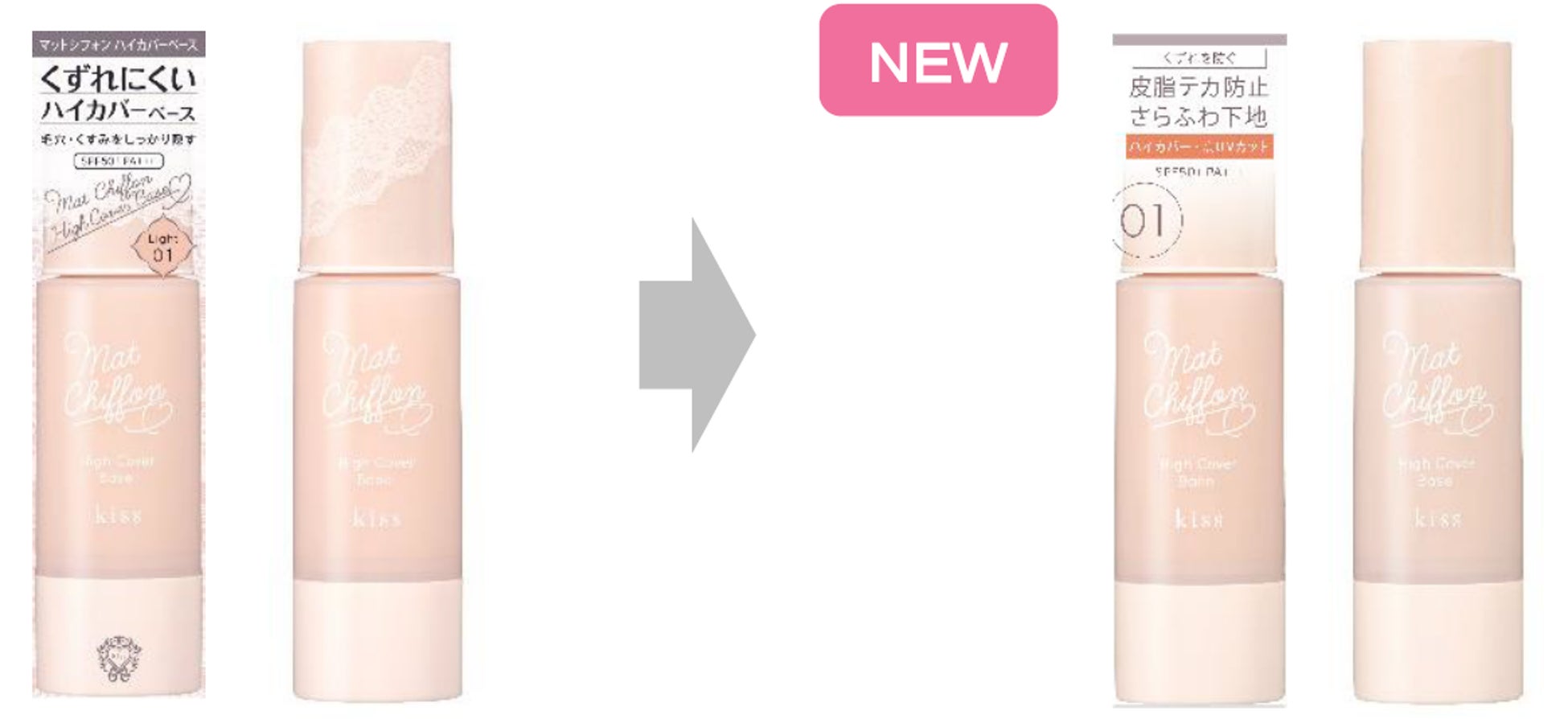 毛穴をきれいにカバーして、崩れにくいマット肌に仕上げるkissで人気のマットシフォンシリーズのベースアイテムが、装いを新たに登場!
