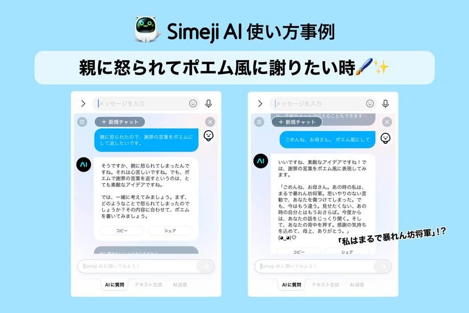 Z世代に大人気!キーボードアプリ「Simeji」の新機能、「SimejiAI」がリリースより2ヶ月間でMAU87万突破!
