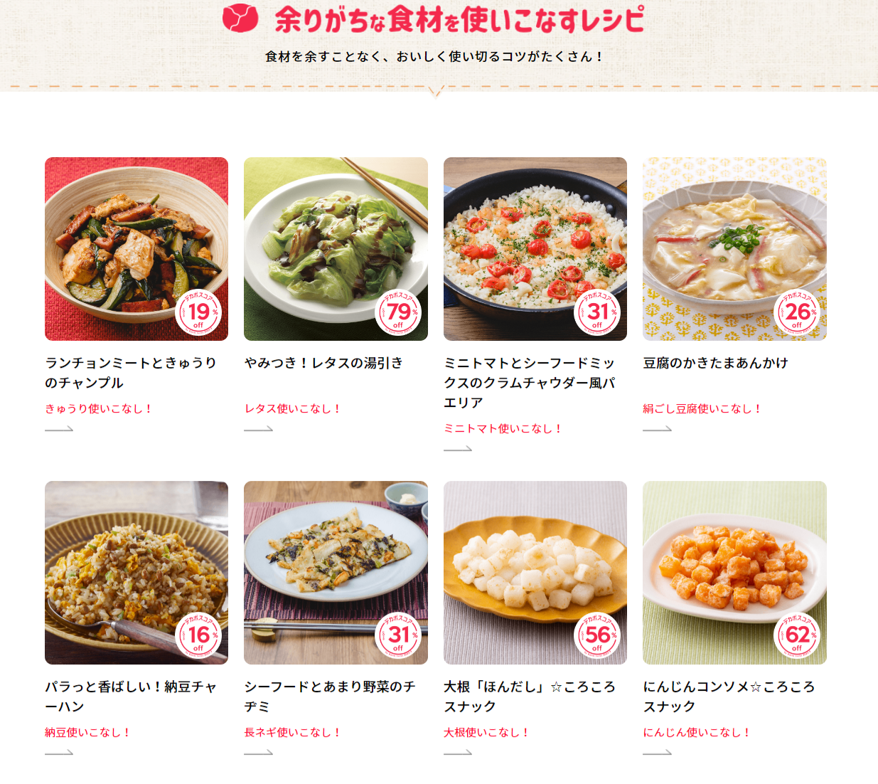 味の素では、フードロス削減の実践喚起を目的とした専用サイト「TOO GOOD TO WASTE〜捨てたもんじゃない!〜™」で紹介されている40個のフードロス削減レシピに「デカボスコア」が導入されます。