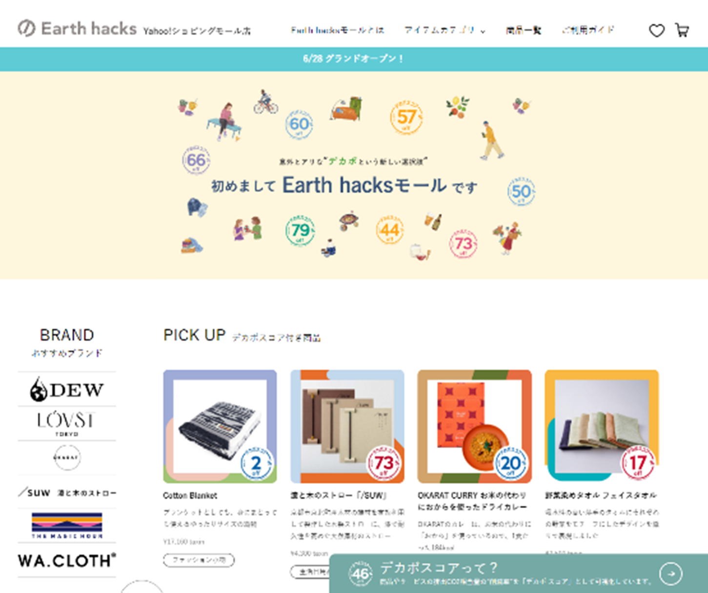 さらに、「デカボスコア」導入製品を購入できるEarth hacksモールをYahoo!ショッピングにあらたに出店し、ヤフーと協同して、生活者との接点強化を図る取り組みを強化して参ります。