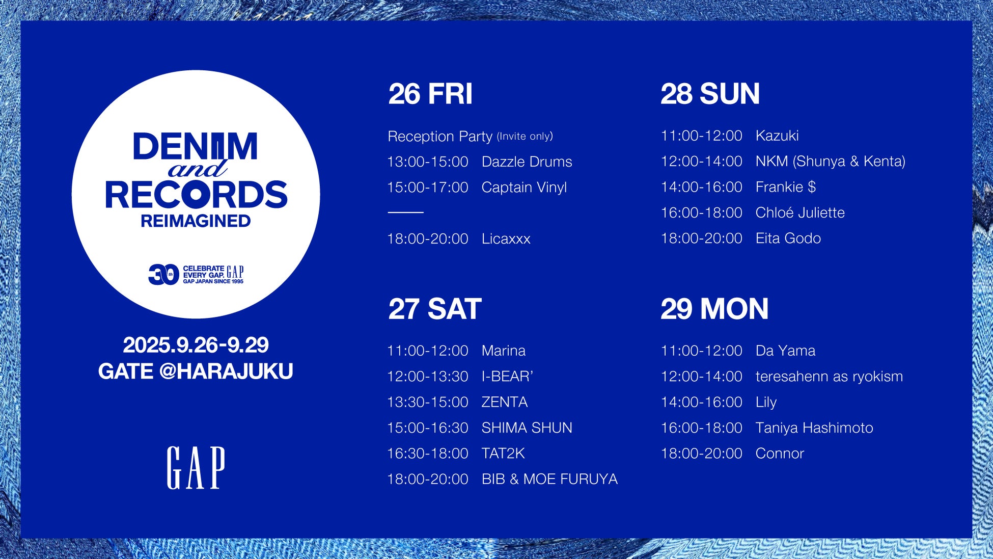 Gap、日本上陸30周年を記念したスペシャルイベント“Denim and Records Reimagined”を原宿・神宮前GATEにて9月26日(金)より開催