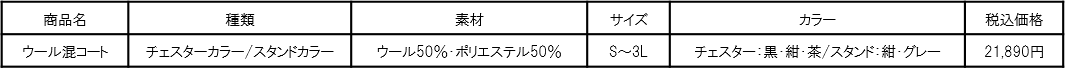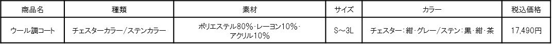 ビジネスシーンに最適なきちんと感を演出できる「ウール調コート」は、ウエスト周りにゆとりを持たせたシルエットにすることで、リラックス感がありカジュアルシーンでもご着用いただけます。