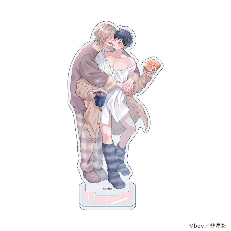 パジャマ姿でぎゅっ♪ 2人の甘~い同棲生活を覗き見できる、縦横最大15cmのアクリルスタンドです。