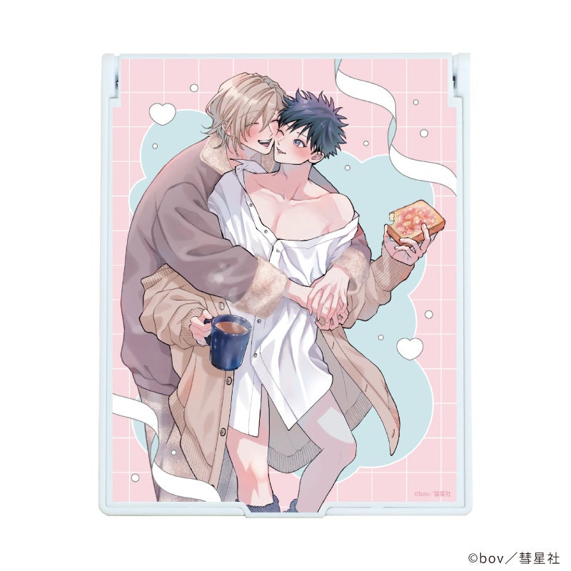 アイドルパロディや口輪の拘束プレイなど、bov先生の圧倒的な画力が光る公式イラストがアクリルカードに。約9cm×7cmの大きさでやや厚みがあるため、壁に立てかけて飾れます◎