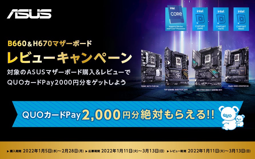 ASUS B660&H670 マザーボード購入&レビューキャンペーンを開催!