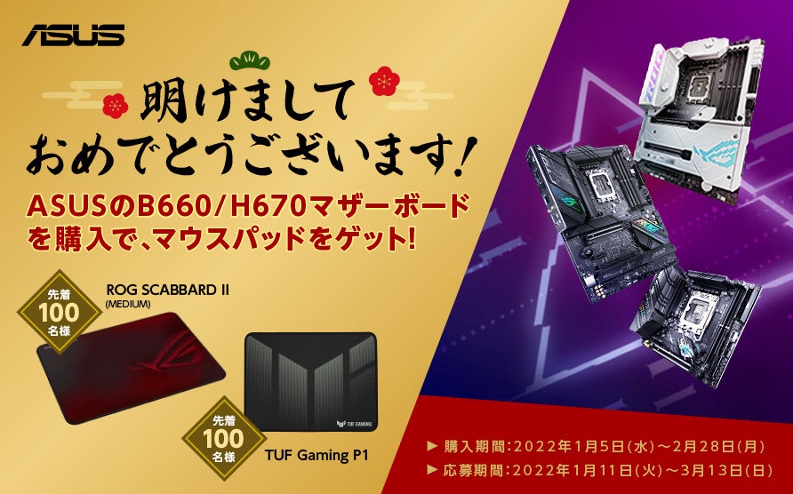 明けましておめでとうございます!ASUS B660&H670 マザーボードの購入キャンペーン【先着200名様限定!】