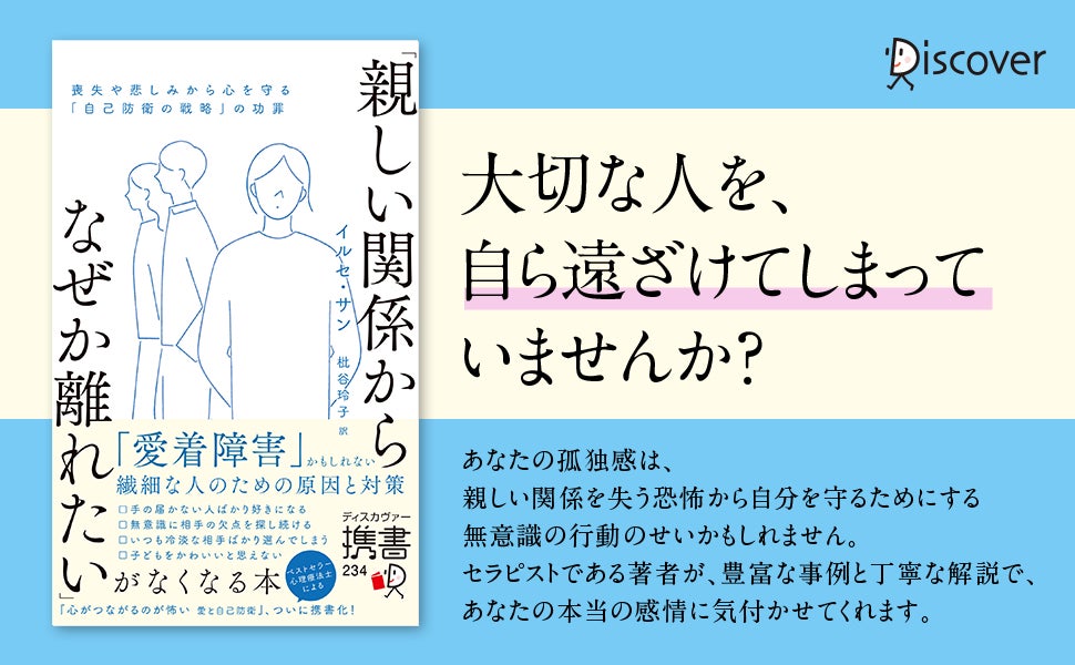 株式会社ディスカヴァー・トゥエンティワン(本社:東京都千代田区、取締役社長:谷口奈緒美)は2021年12月23日に『「親しい関係からなぜか離れたい」がなくなる本 喪失や悲しみから心を守る「自己防衛の戦略」の功罪』(イルセ・サン 著、枇谷玲子 訳)を刊行しました。