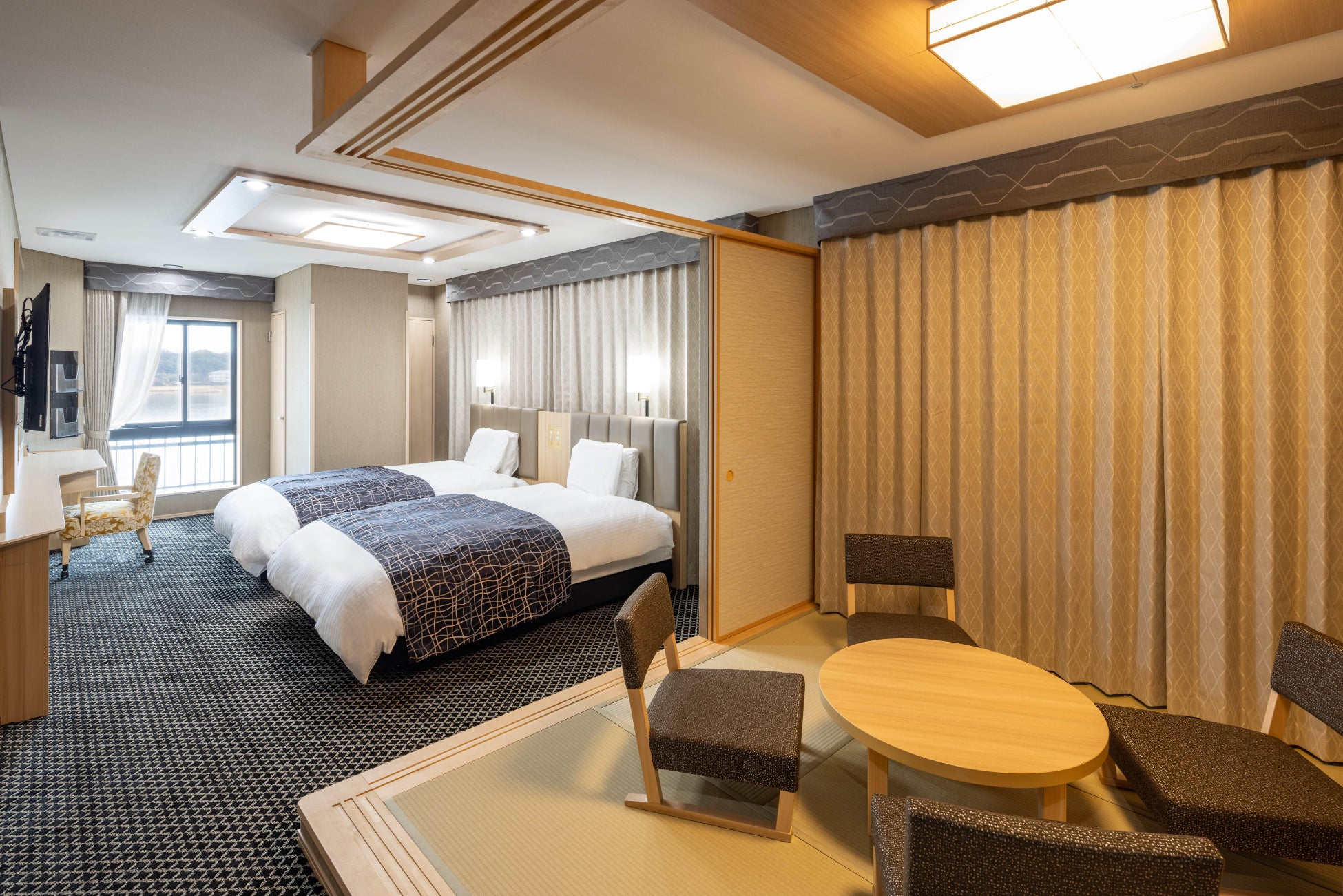 アパリゾート佳水郷(石川県加賀市潮津町イ72-1)は、2006年8月31日開業した、加賀片山津温泉の中央に広がる柴山潟湖畔に建ち、客室は全てレイクビューの温泉宿です。2023年12月にサウナを新設するなどリニューアルした大浴場・露天風呂からは、名湖「柴山潟」と、その向こうに連なる白山連峰を望むことが出来ます。2024年4月には、第9期叡王戦五番勝負第2局開催を記念した「将棋モニュメント」をエントランスに設置し、将棋コーナーや客室「王将の間」「玉将の間」をリニューアル。2025年には枯山水や屋内庭園に石造りの将棋駒を並べ、将棋の駒/成駒が対になった和洋室のコネクトルーム「飛車/竜王の間」「角行/竜馬の間」「銀将/成銀の間」など将棋をコンセプトとした温泉旅館に生まれ変わりました。アクセスは、JR北陸本線・北陸新幹線「加賀温泉駅」から車で約10分(送迎バス有・要予約)小松空港から車で約20分、北陸自動車道「片山津I.C.」から車で約5分の立地です。