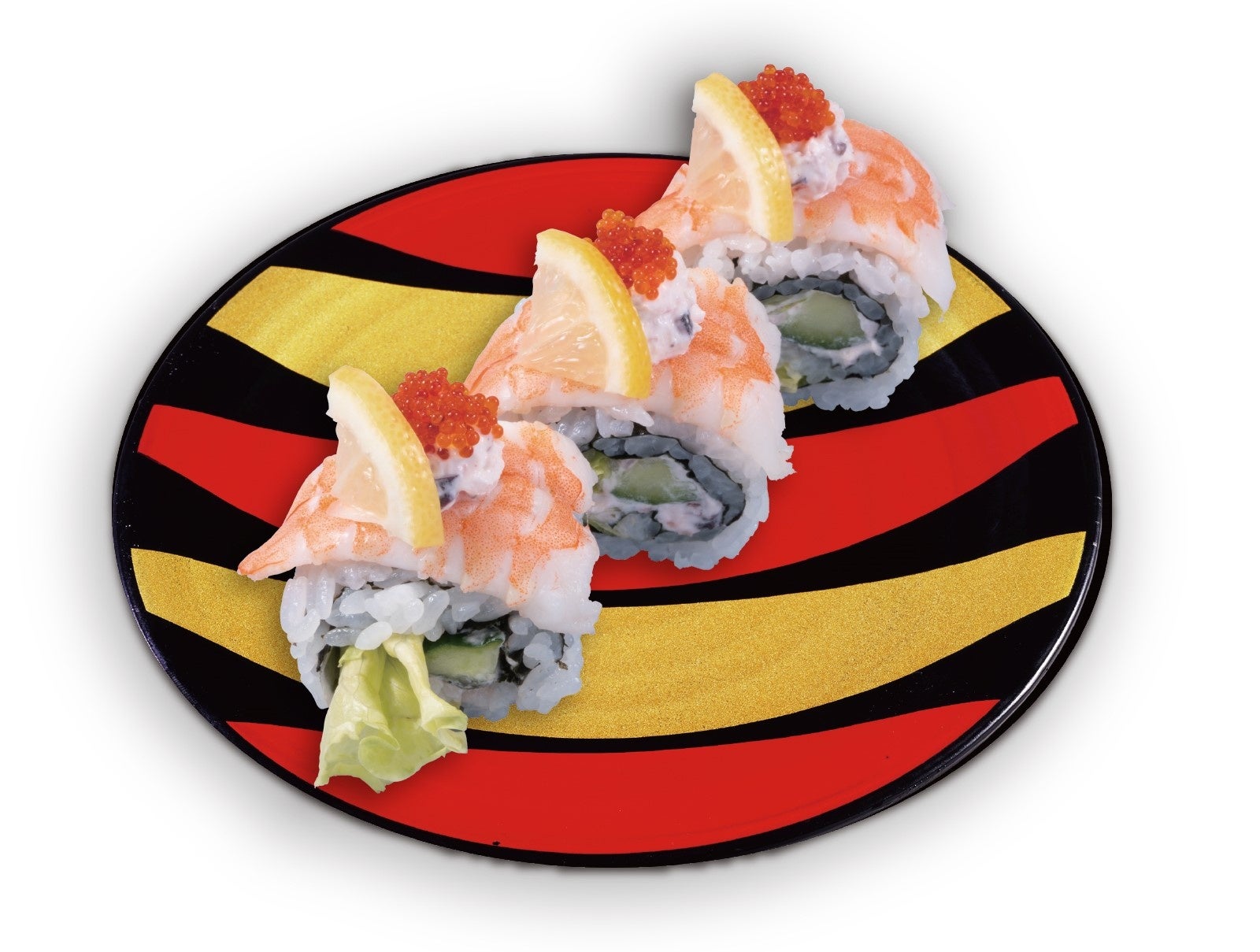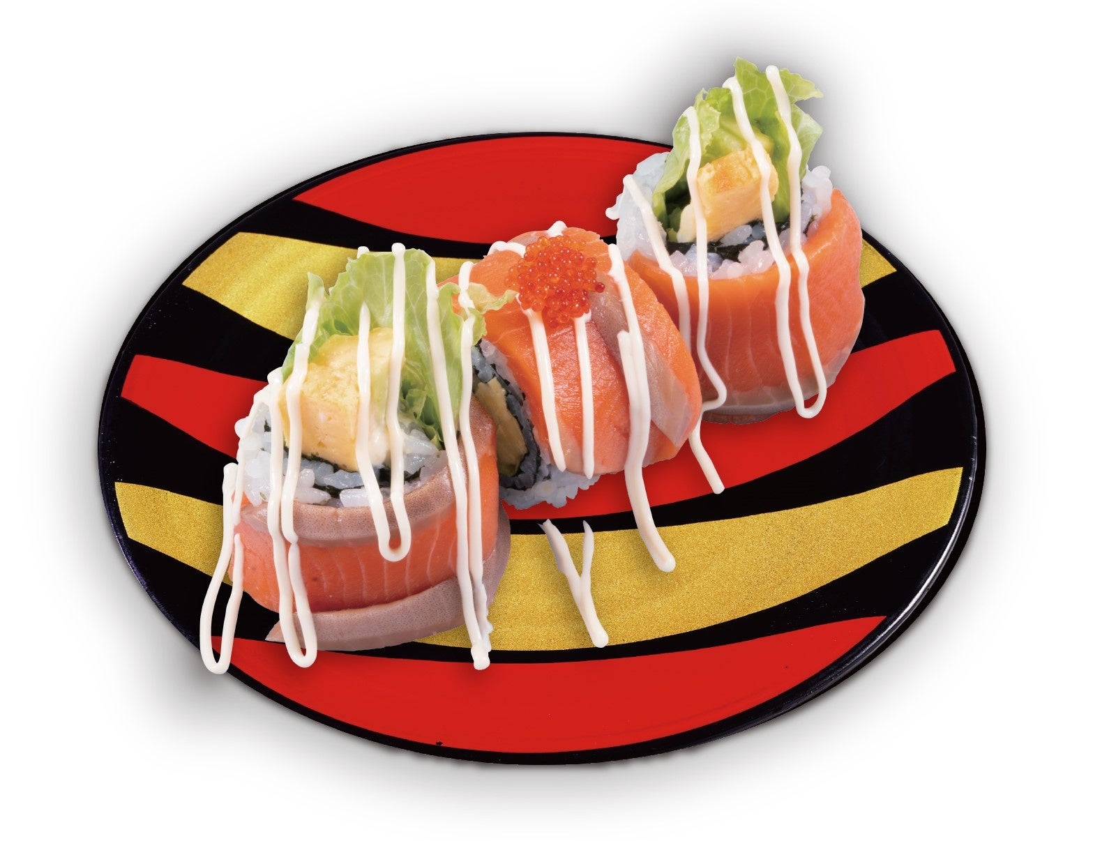 海外では裏巻きにしたロール寿司が定番としてよく食されており、かっぱ寿司では、その定番をかっぱ寿司ならではのネタである「イカサラダ」や「天ぷら」などを使った商品をお楽しみいただけます。