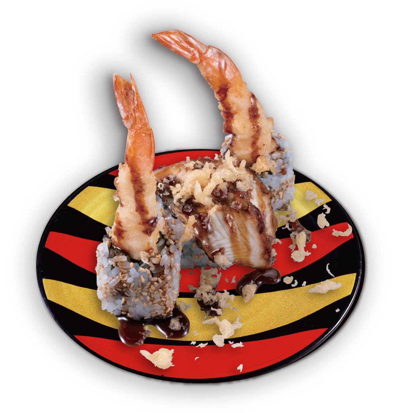 食べ応えある大えび天と、人気ネタのひとつであるうなぎを味わえる裏巻き寿司(ロール寿司)です。ぷりぷりした食感の大えび天と、炙った香ばしい風味とふっくらした食感のうなぎ、少し甘めのたれと天かすのクリスピーな食感が楽しめます。