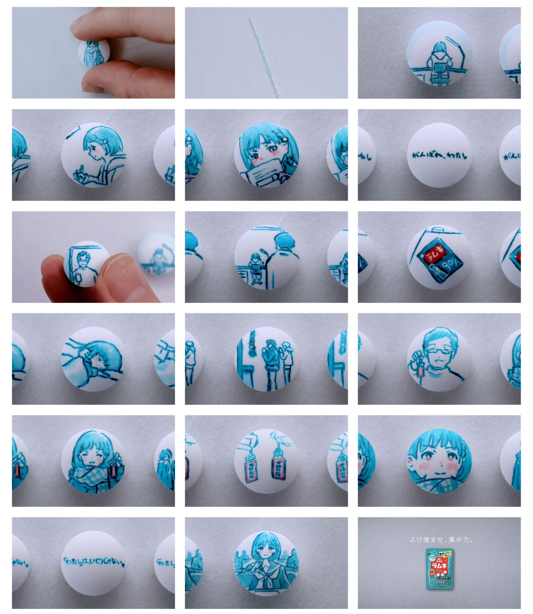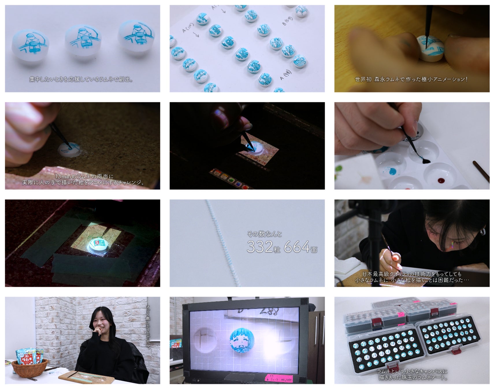 ■制作には美大生5名が参画、のべ330時間をかけ総計332粒のラムネにアニメを描くメイキングムービーも公開
