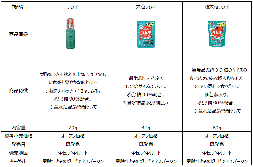 1973年に発売を開始したロングセラーブランド「森永ラムネ」は、ぶどう糖90%配合(※含水結晶ぶどう糖として)、おやつだけでなく仕事や勉強で集中したい時・リフレッシュしたい時等、幅広いシーンでお楽しみいただいています。