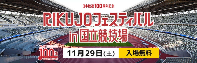この度、11月29日(土)に100年支えていただいたみなさまへの感謝を込めて「~日本陸連100周年記念~RIKUJOフェスティバル in 国立競技場」を開催いたします。