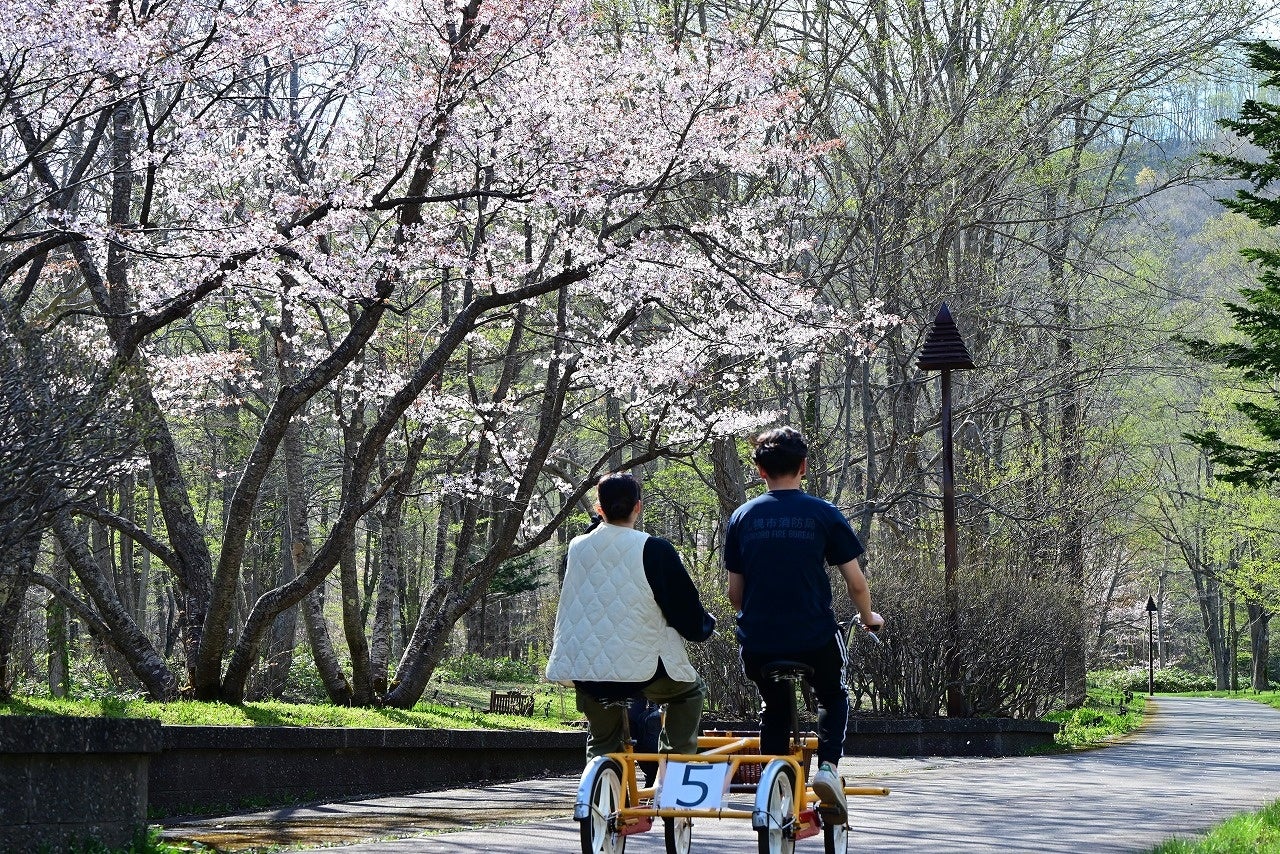 サイクリングを楽しみながら鑑賞できるサクラをはじめ、カタクリやエゾエンゴサクなどの花々を楽しめます。