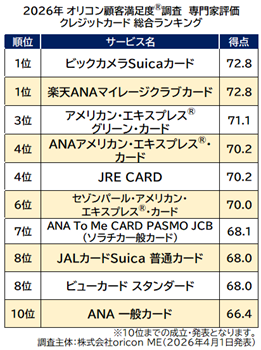 <初発表>2026年 オリコン顧客満足度®調査 個人向けクレジットカードランキング┃消費生活ジャーナリスト 岩田 昭男氏監修!40名の専門家が評価