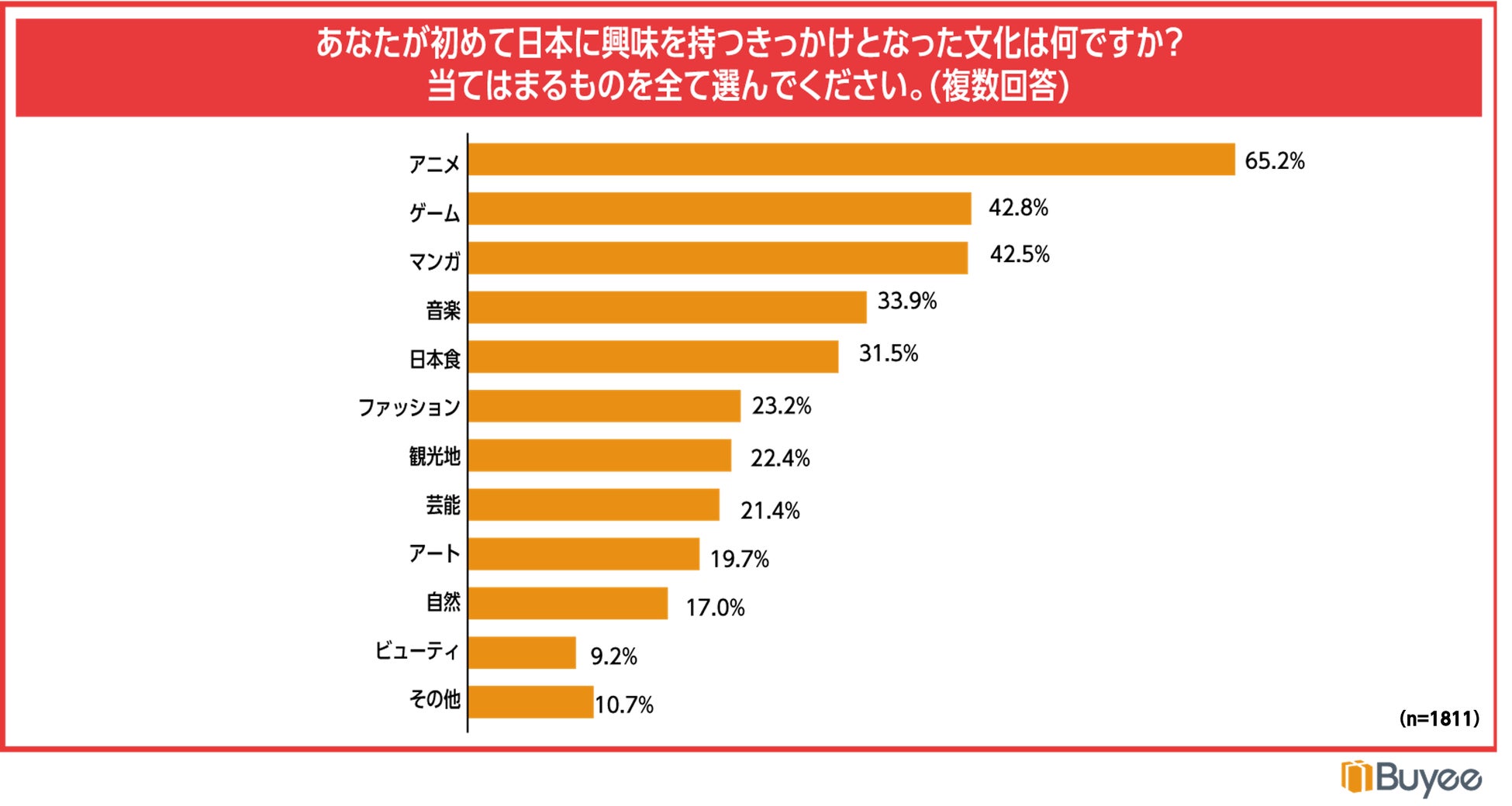 BEENOS株式会社(東証プライム:3328)は、BEENOSグループが運営する海外向け購入サポートサービス「Buyee(バイイー https://buyee.jp/ )」を利用されている海外のお客様1821名に「越境ECと日本文化に対する意識調査」を実施しました。