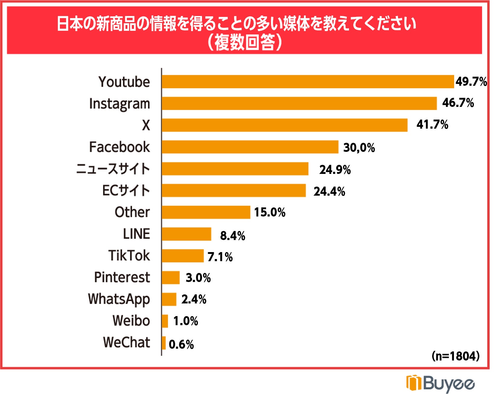 また、情報を取得する媒体は「YouTube」49.7%、「Instagram」46.7%、「X」41.7%となり、複数のSNSを活用して情報収集をしていることがわかります。