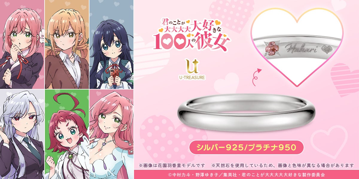 株式会社ユートレジャー(本社:東京都新宿区、代表取締役:伊藤 崇史)は、現在TVアニメ第2期が放送中の「君のことが大大大大大好きな100人の彼女」とのコラボレーションリング(指輪)の予約受付を、2025年2月18日(火)~3月18日(火)の期間、ユートレジャーオンラインショップ、ユートレジャーコンセプトストア池袋にて行います。