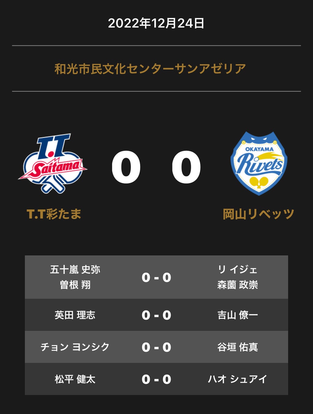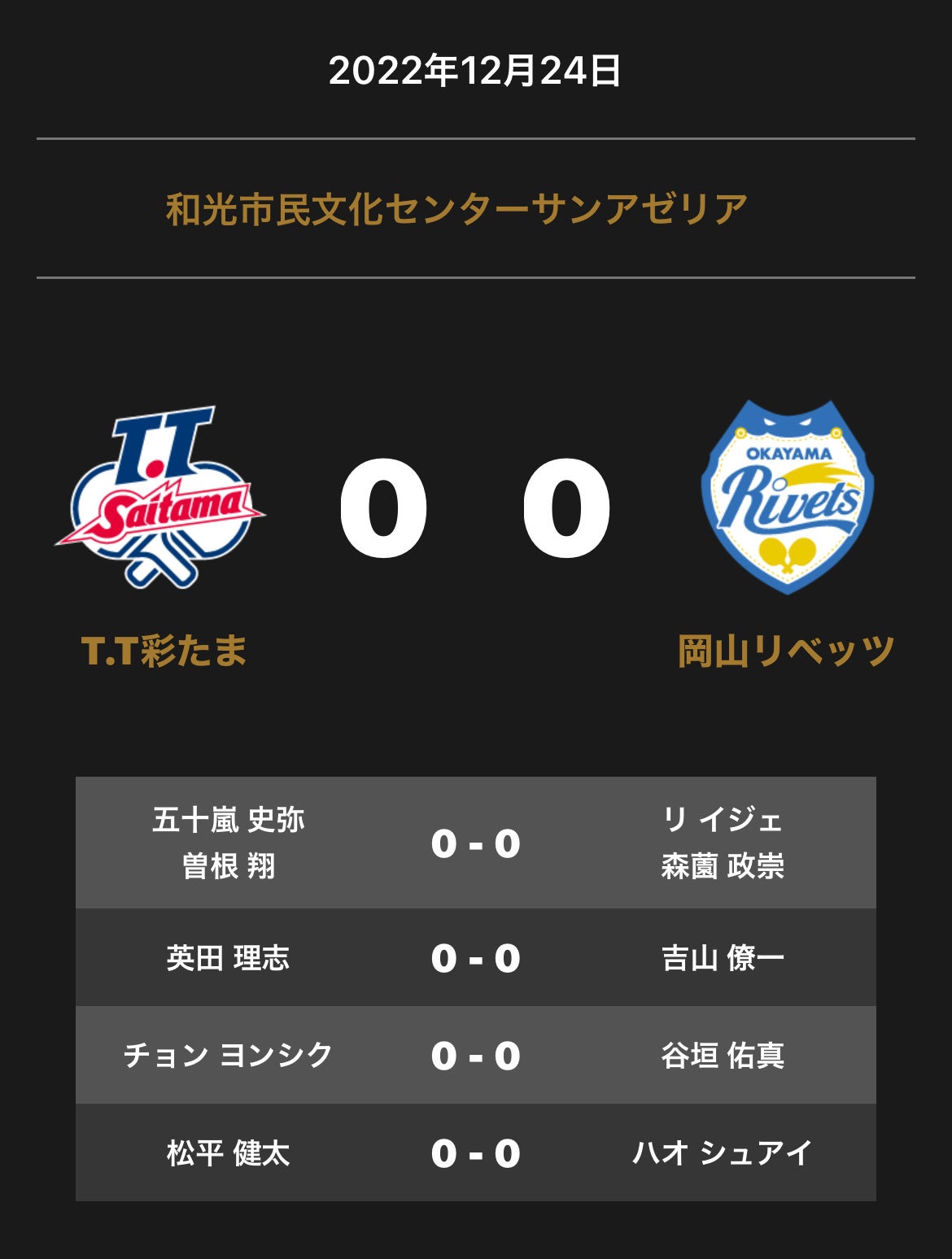 ノジマTリーグ 2022-2023シーズン 12月24日(土) 14:00試合開始 T.T彩たま vs 岡山リベッツ 対戦オーダー発表