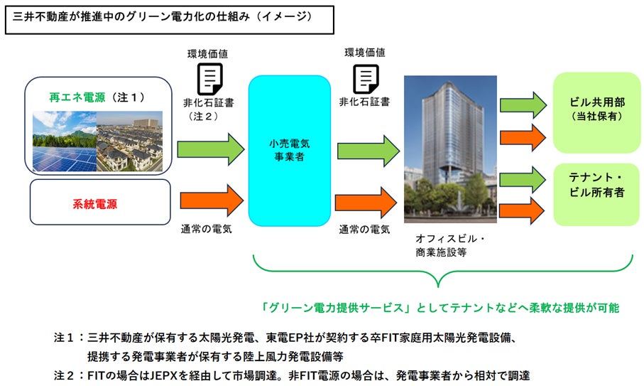 これにより、国内のオフィス、商業、ホテルなど全用途・全施設において、テナント企業・グループ会社へのグリーン電力提供サービスの展開が可能となり対象施設は全国約250棟へ拡大。2024年内に使用電力のグリーン化要望を募り、2025年4月より供給開始。