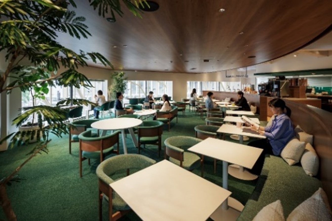 集中して作業ができる 1 人席から、複数人でリラックスした時間を楽しめるボックス席、ミーティングやプライベートな集まりにも使える個室など席の種類も豊富に備えており、カフェとしても、ビジネスシーンにおいてもご利用いただける空間です。