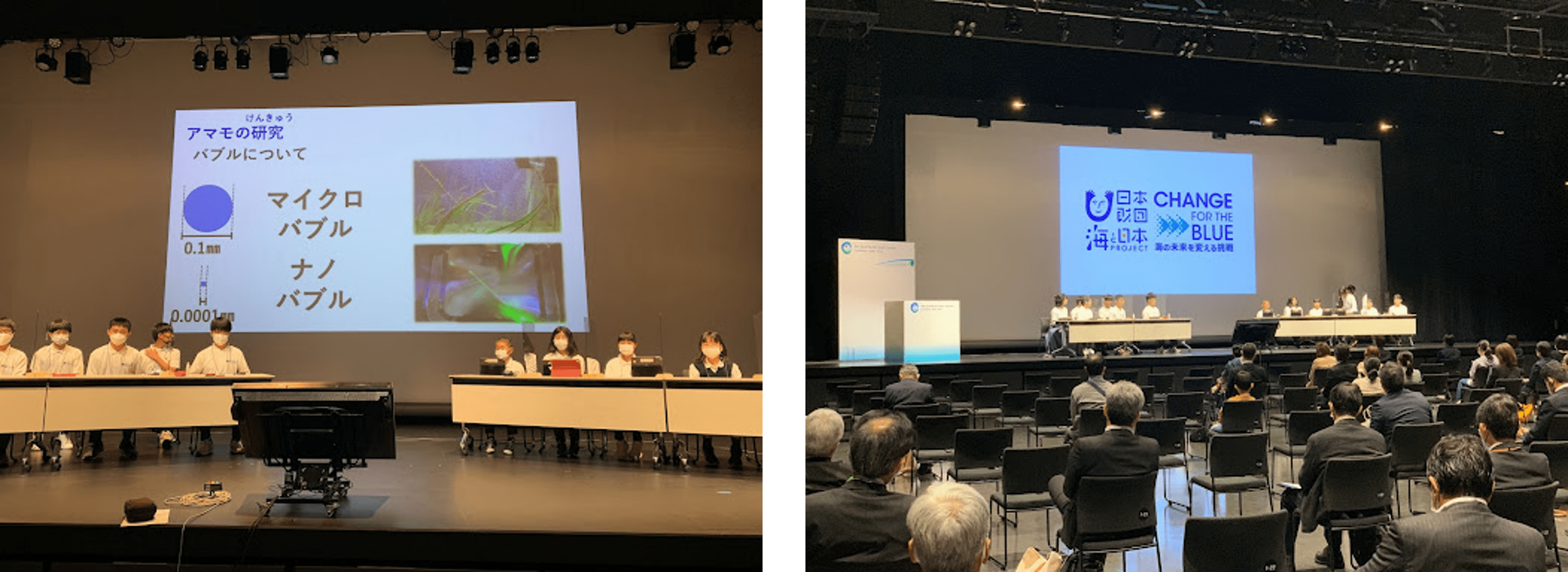熊本は地下水の恵みを享受しているとともに、豊かな海に生活を支えられています。しかし世界的に海洋ごみの問題が叫ばれており、海洋ごみの多くは、街で生活する人間が廃棄したものが川を伝って海に流失していると考えられています。特にマイクロプラスチック化したものは回収が不可能であり、生態系への影響も懸念されています。これらの問題について、小学生と高校生がこれまで学習した成果を世界に発信、ステージ上で意見交換をし、日本財団のプロジェクト「CHANGE FOR THE BLUE」の理念に基づき、海洋ごみゼロ宣言をしました。このイベントは、日本財団が推進する海洋ごみ対策プロジェクト「海と日本プロジェクト・CHANGE FOR THE BLUE」の一環で開催しました。