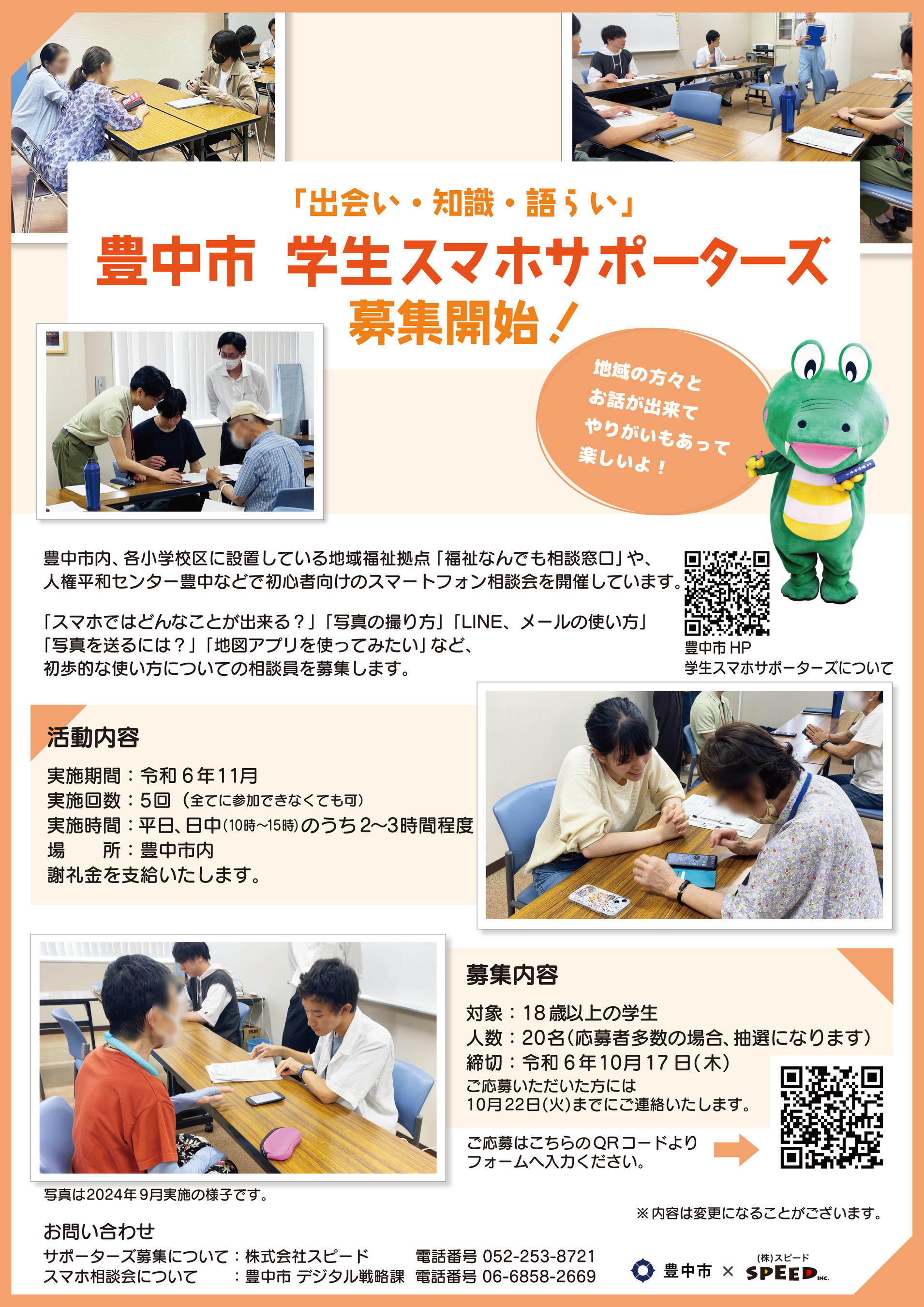 今回のプロジェクトでは、株式会社スピード(本社:愛知県瀬戸市)と協働し、現在市が取り組んでいる「初心者向けスマホ教室」に学生がスタッフとして参画する仕組みの構築と、事業の持続可能性についての実証実験を行います。