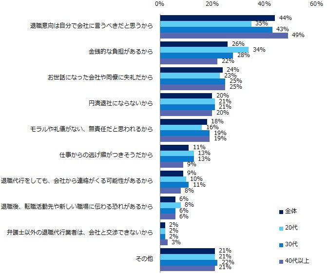 ・お金を払って退職代行するよりも、お世話になった人に感謝を述べて退職したほうが幸福度は高くなり、次の仕事に向けてのメリハリにもつながると思うから。(27歳女性)