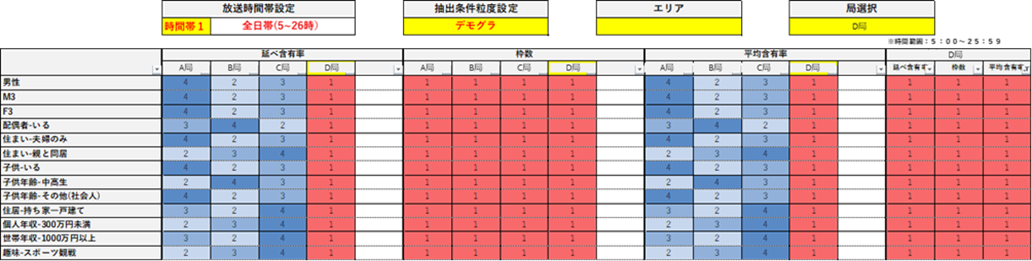 - テレビマーケティングのコンサルタントが作成した「分析シート」で、TV局のみなさまをご支援