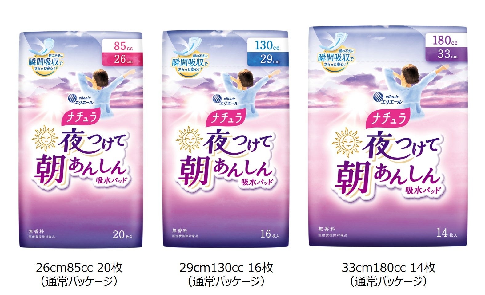 「ナチュラ さら肌さらり」「ナチュラ 夜つけて朝あんしん 吸水パッド」