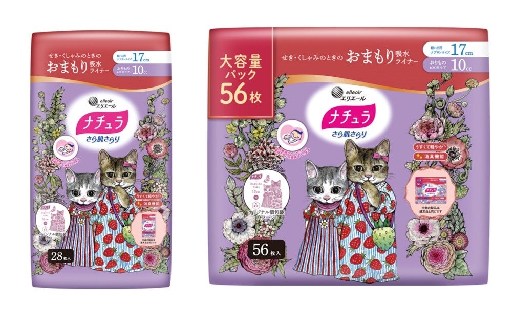 衛生用紙製品No.1ブランド※1の「エリエール」を展開する大王製紙株式会社(本社:東京都千代田区)は、吸水ケアブランド「ナチュラ」と個性溢れる世界観で人気の画家・ヒグチユウコさんとのコラボレーション第3弾として、「ナチュラ さら肌さらり おまもり吸水ライナー」(5商品)、「ナチュラ さら肌さらり あんしん吸水ナプキン」(4商品)、「ナチュラ 夜つけて朝あんしん 吸水パッド」(3商品)を2026年4月1日(水)から数量限定で全国発売します。